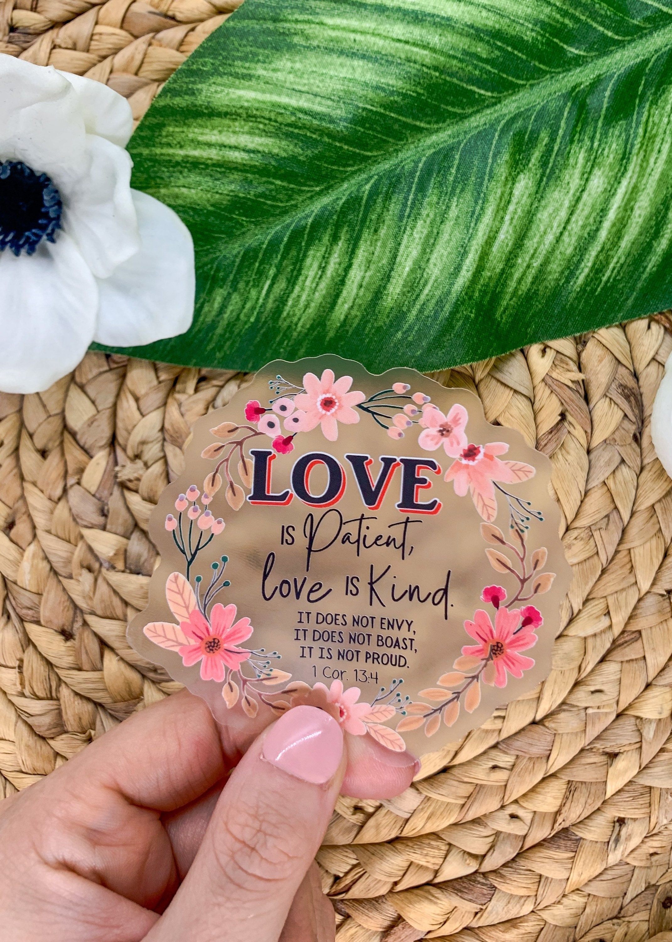 Love Is Patient, Love Is Kind, 1 Cor 13:4, Faith Sticker, Christian Sticker