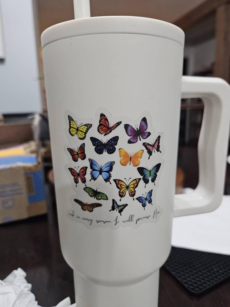 In Every Season I Will Praise You Sticker, Colorful Butterflies Decal, Motivational Sticker, Mental Health Decal, Counselor Sticker