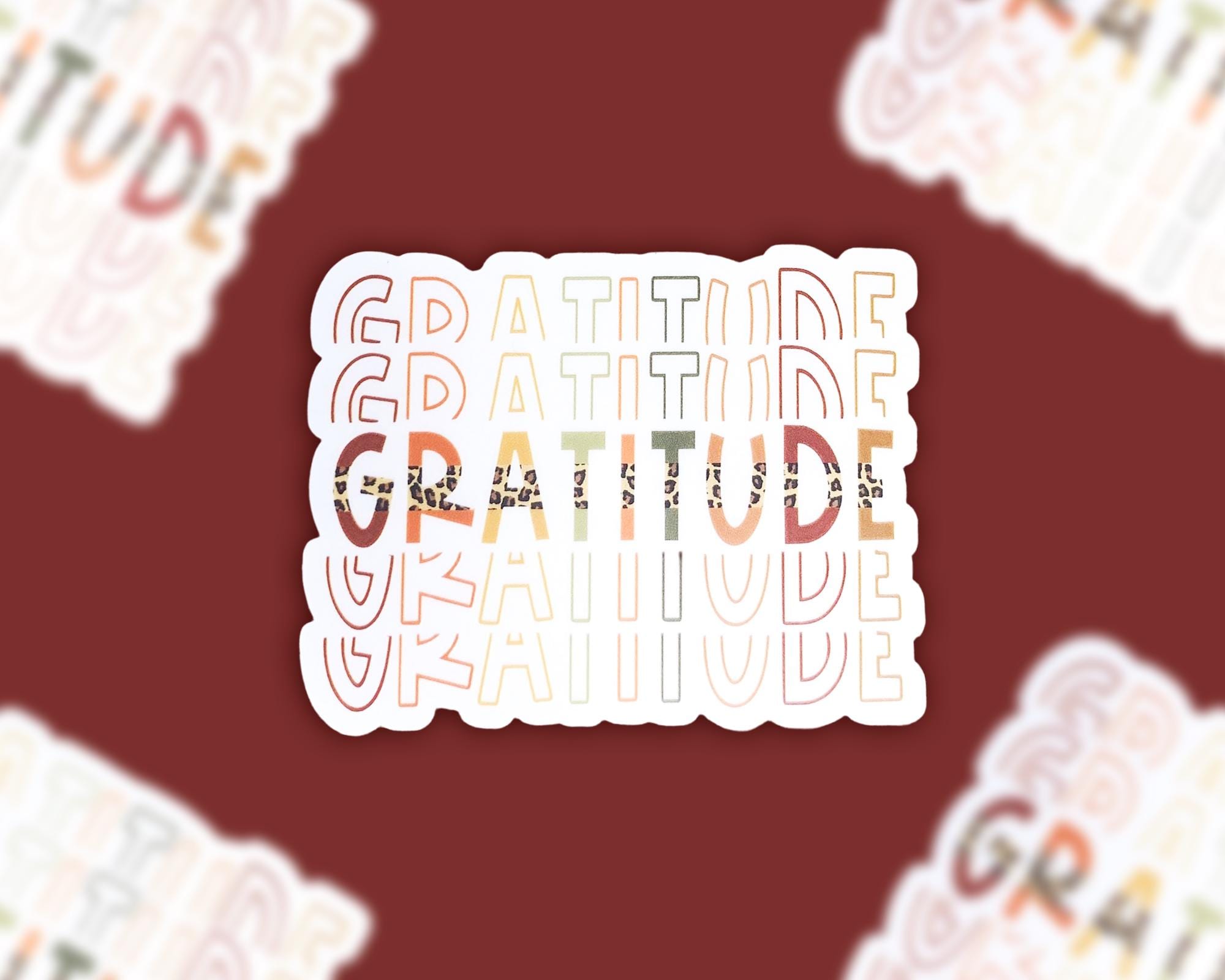 Gratitude Stacked Leopard Clear Sticker, Car Sticker