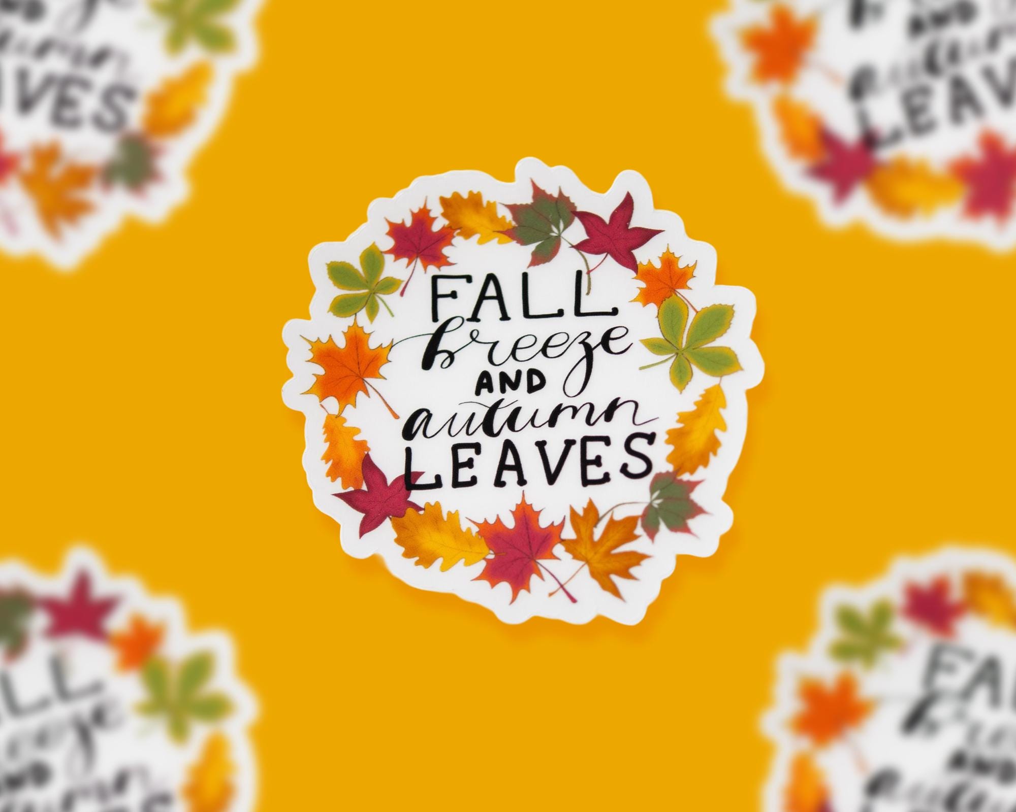 Fall Breeze And Autumn Leaves Sticker, Vinyl Decal, Die Cut Sticker