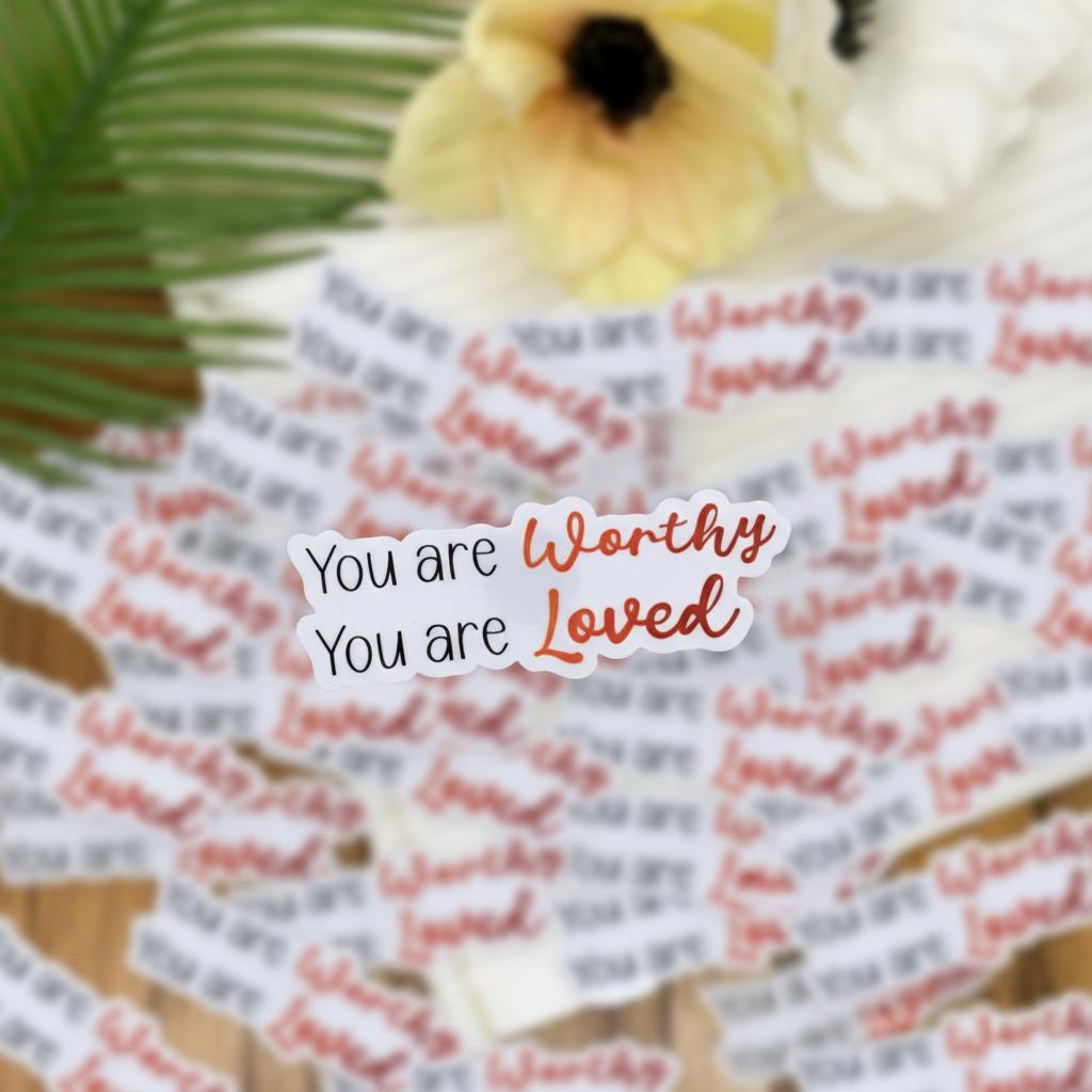 You Are Worthy You Are Loved, Motivational Label, Phone Sticker
