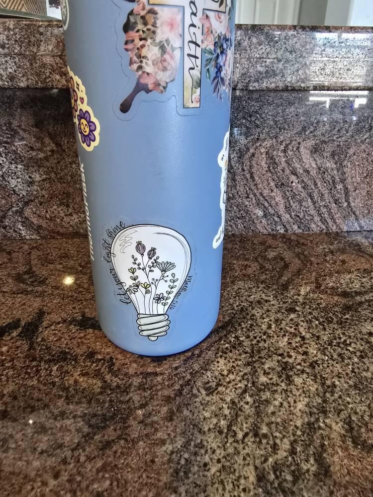 This "Let Your Light Shine” sticker is printed on beautiful, vibrant colors on vinyl sticker paper. This sticker is perfect for water-bottles, laptops, tablets, tumblers, journals and notebooks.