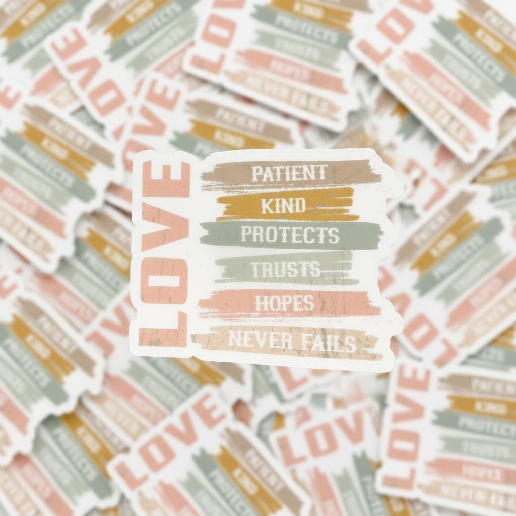 Love Patient Kind Protects Trusts Hopes Never Fails, Clear Decal, Phone Sticker
