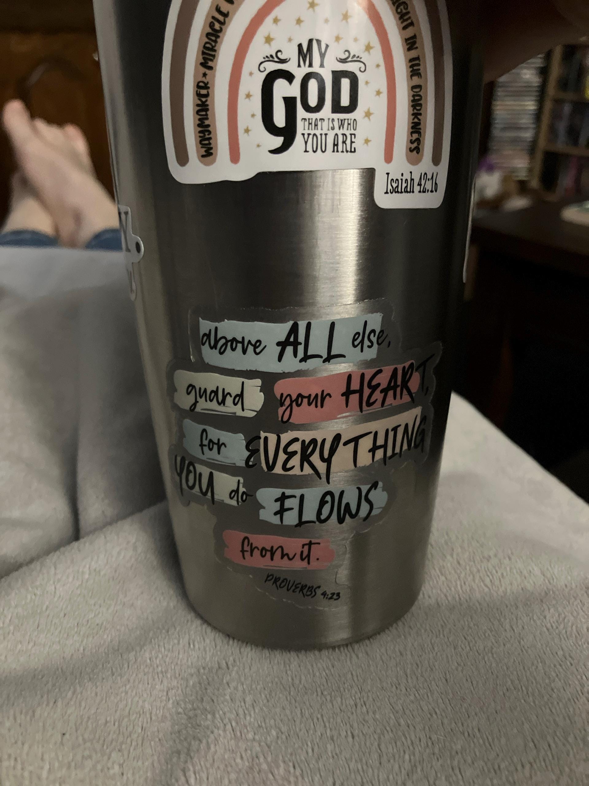 This " Above All Else Guard Your Heart” sticker is printed on beautiful, vibrant colors on vinyl sticker paper. This sticker is perfect for water-bottles, laptops, tablets, iPads, tumblers, journals and not