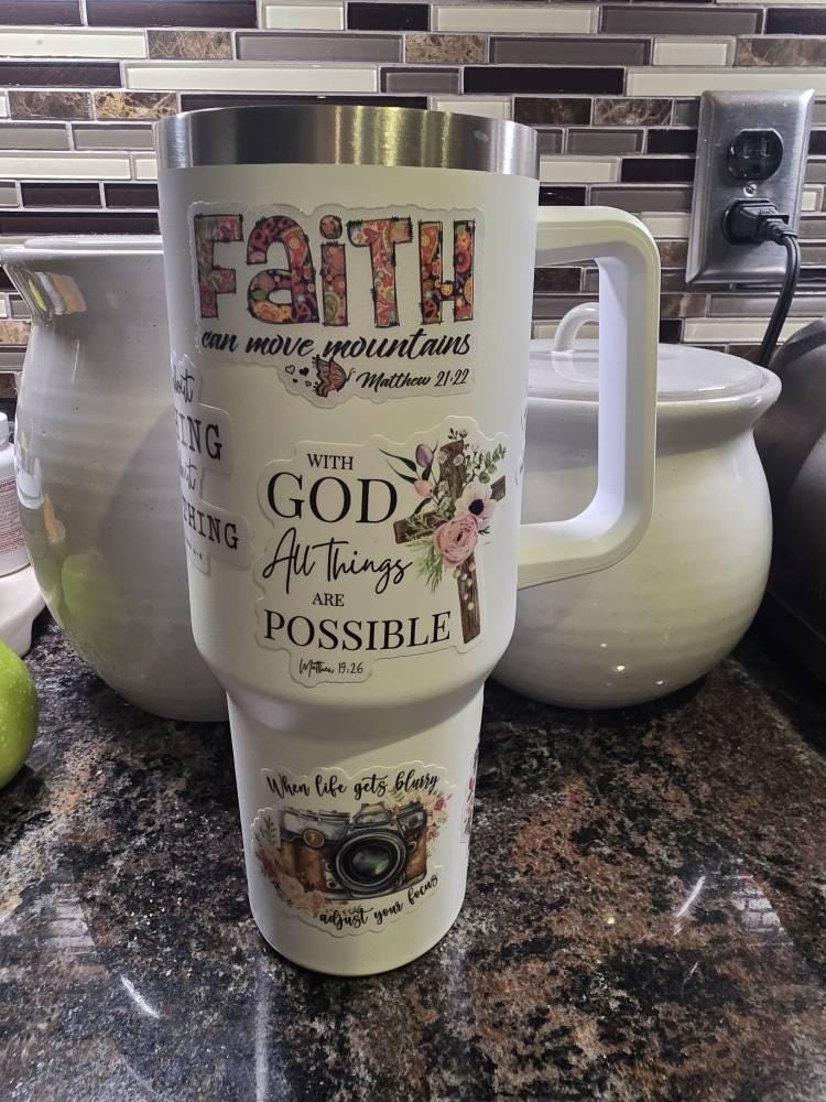 Faith Can Move Mountains Sticker, Inspirational Decal, Religious Label