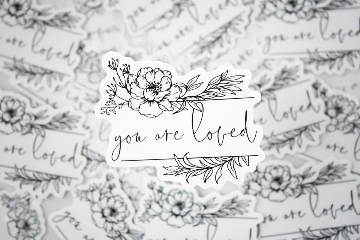 You Are Loved Sticker, Mental Health Sticker, Encouraging Sticker; You Are Loved Sticker, Mental Health Sticker, Encouraging Sticker, Motivational Stickers, Black And White Laptop Sticker, Vinyl Sticker