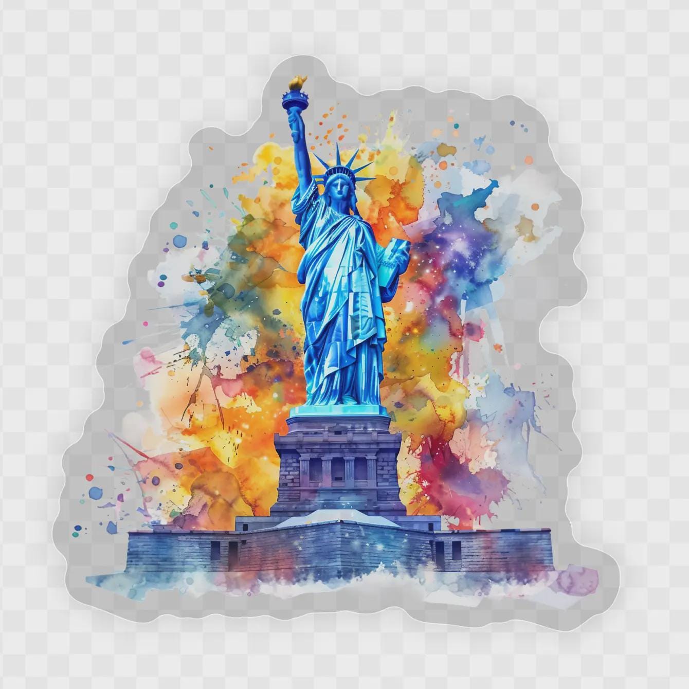 Statue of Liberty Watercolor Clear Vinyl Sticker, Laptop Label Decal, Water Bottle Sticker, Tumbler Sticker Decal, New York City Sticker