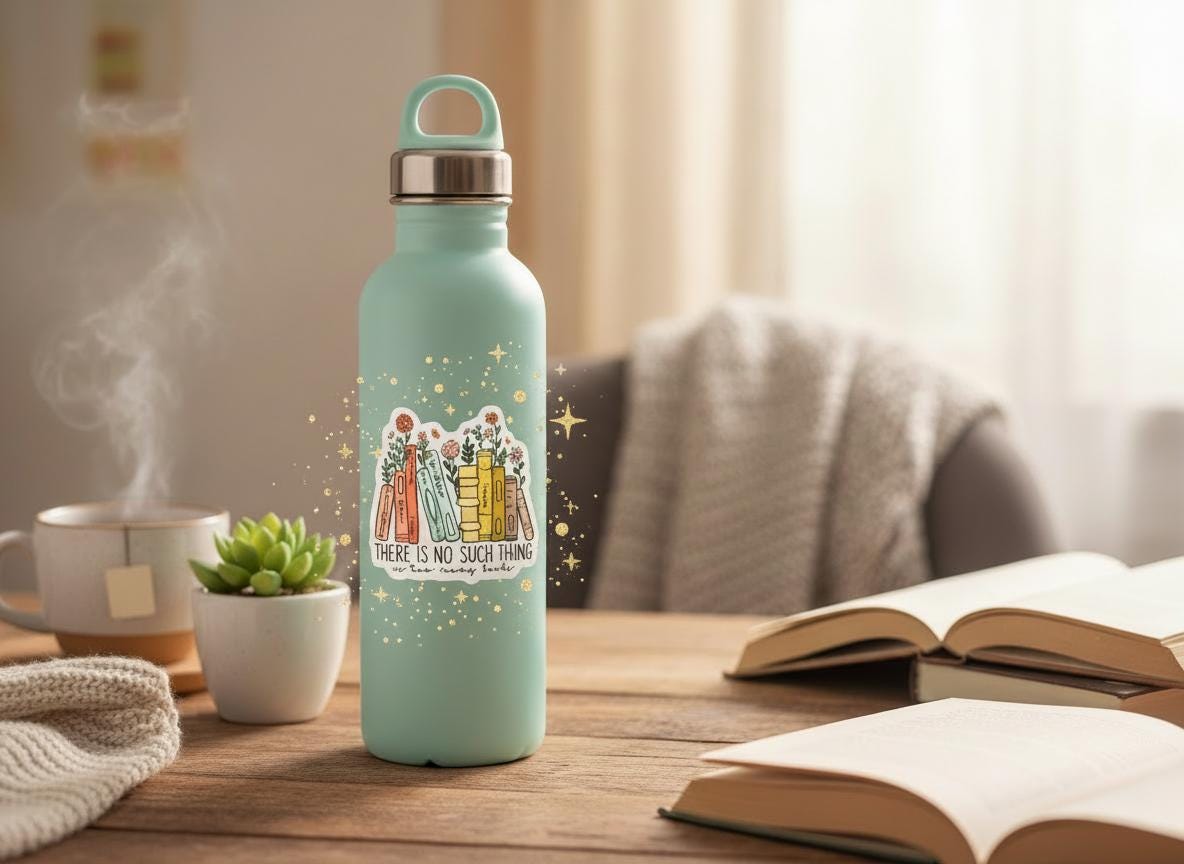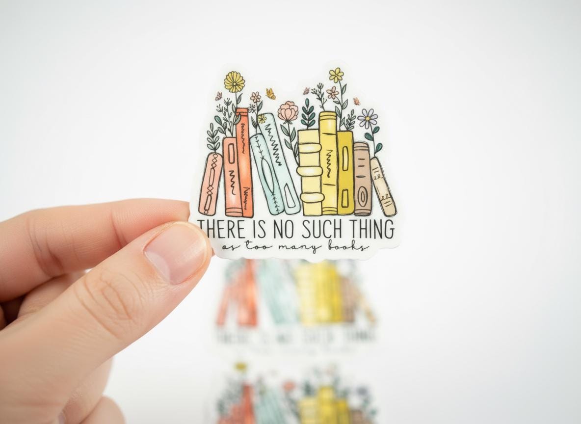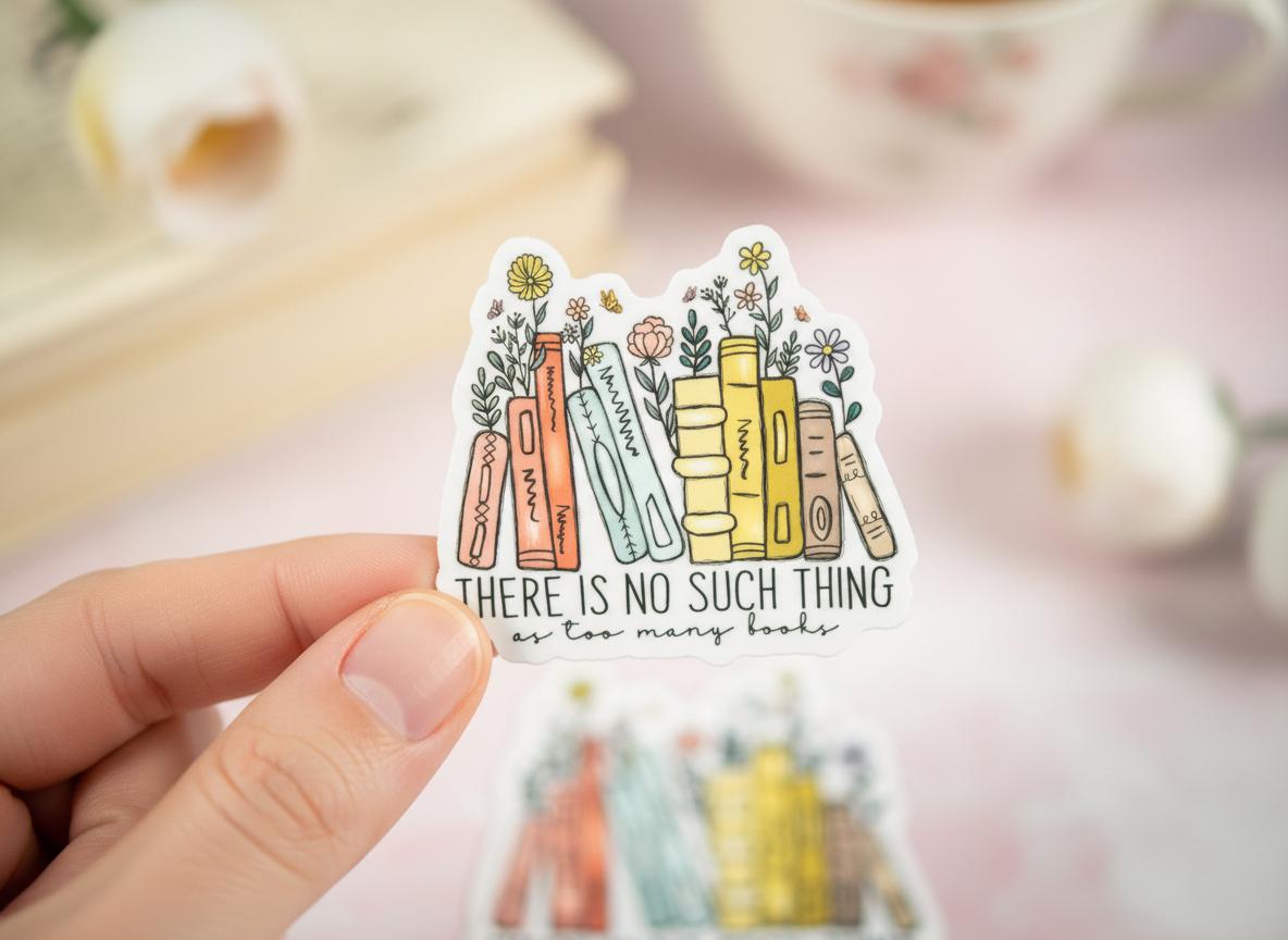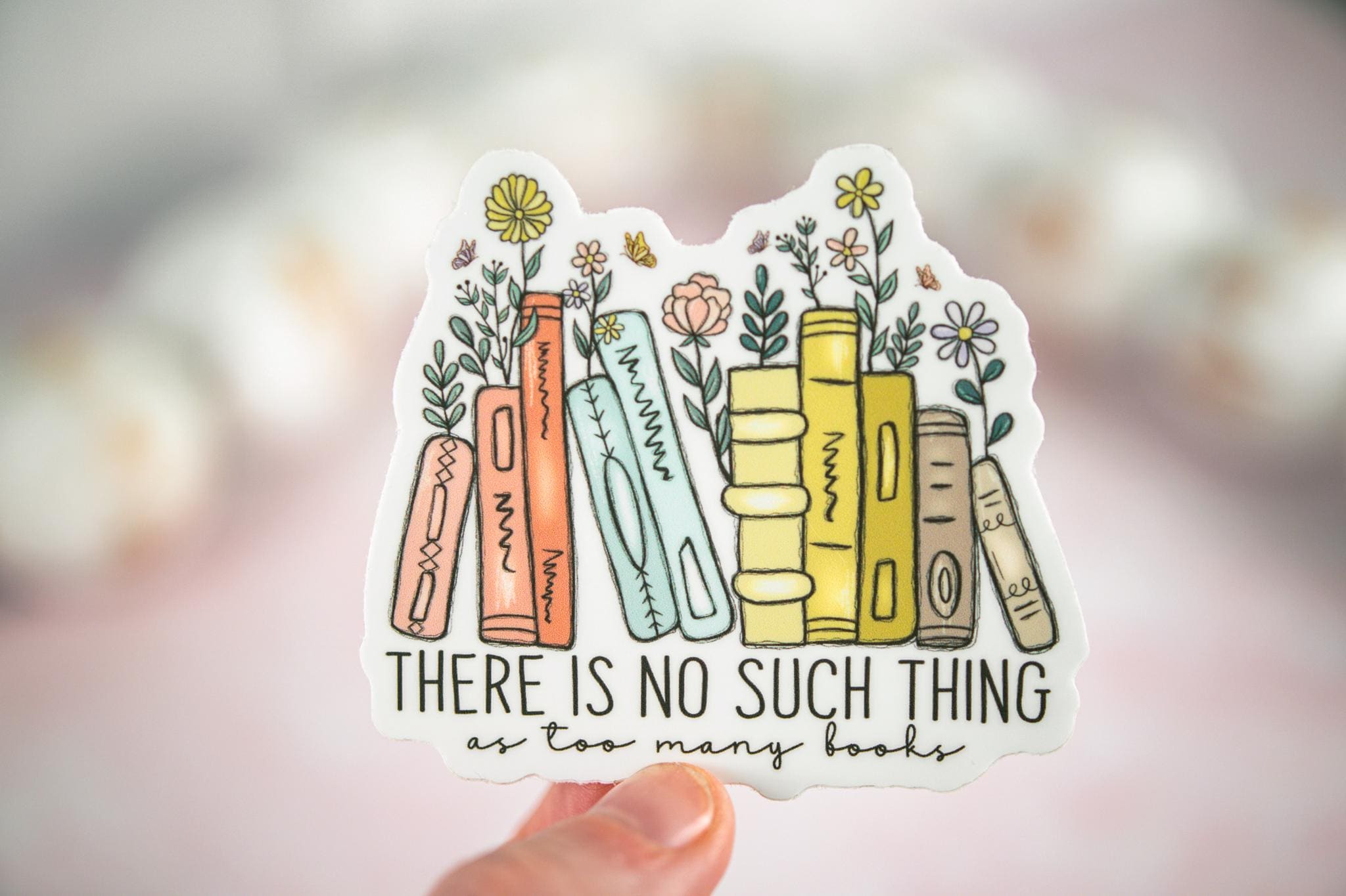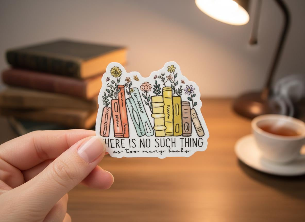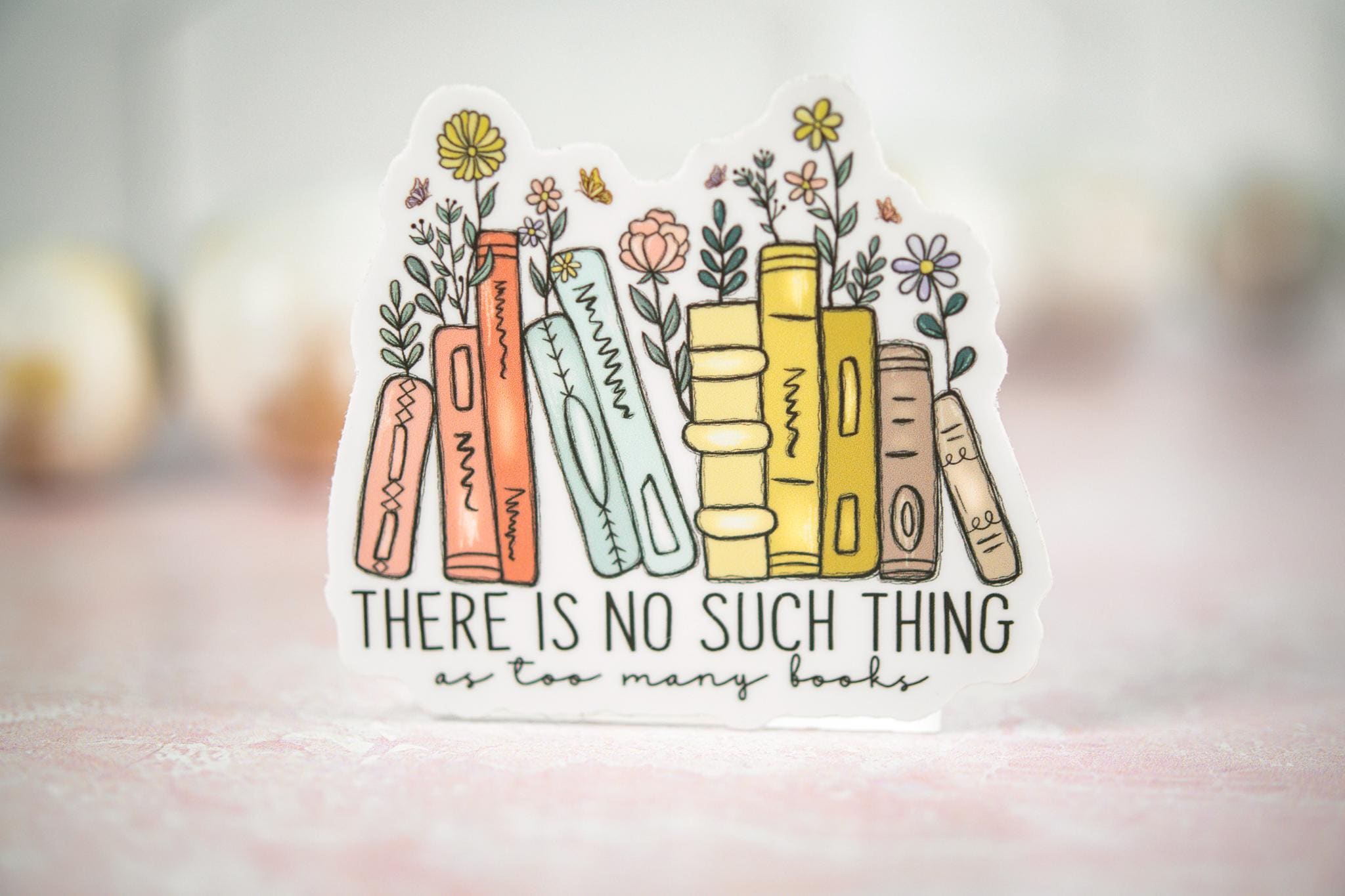 The "There Is No Such Thing As Too Many Books" sticker is printed on beautiful, vibrant colors on vinyl sticker paper. This sticker is perfect for water-bottles, laptops, tablets, tumblers, journals and not