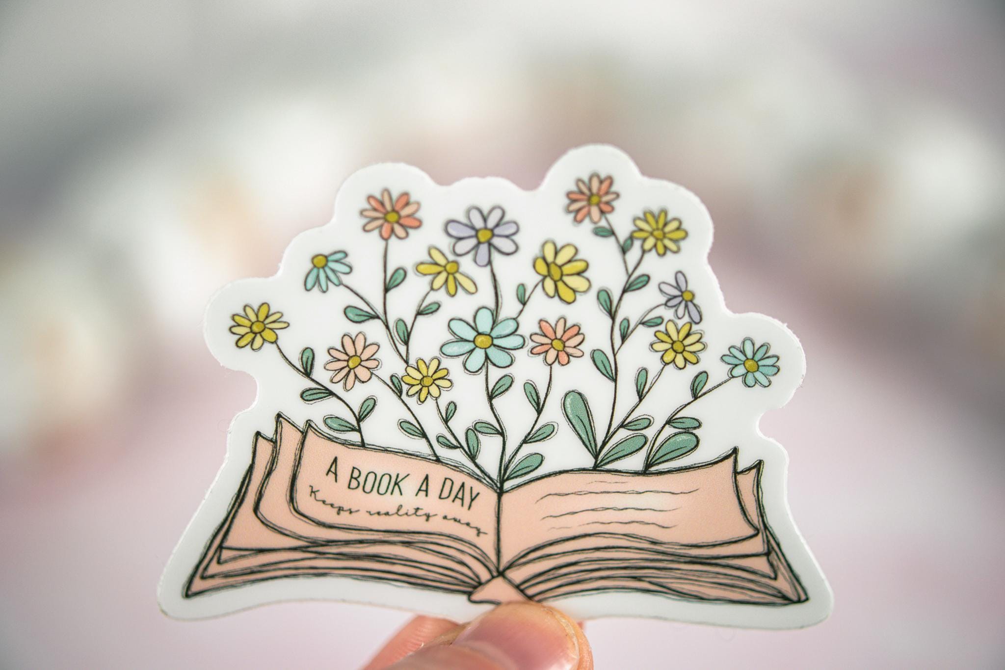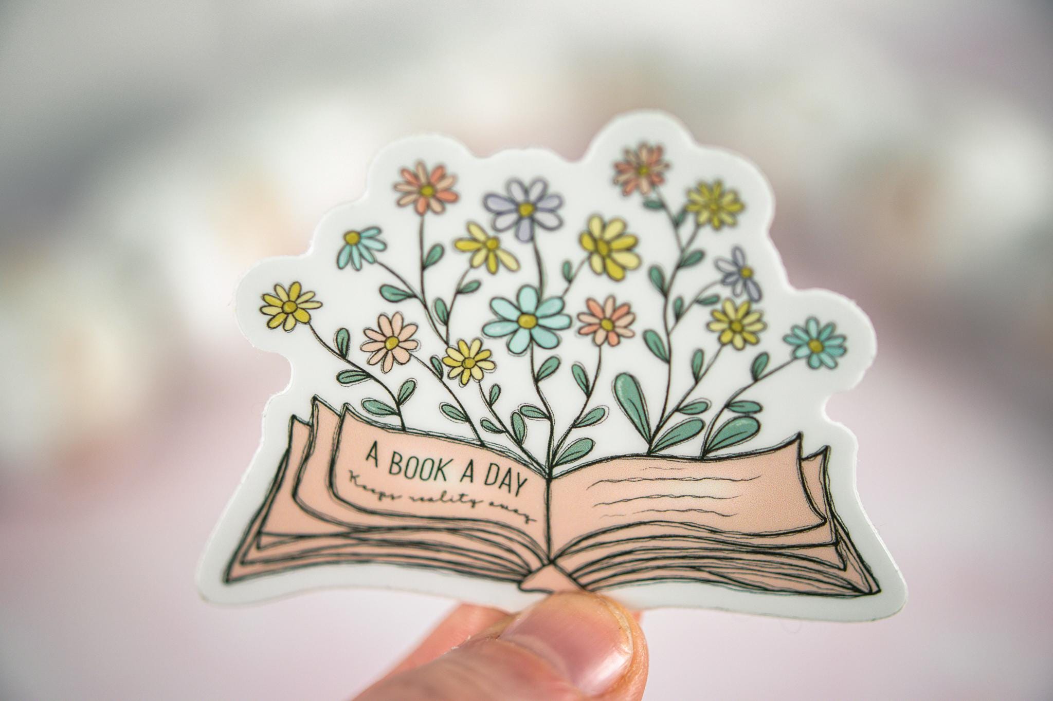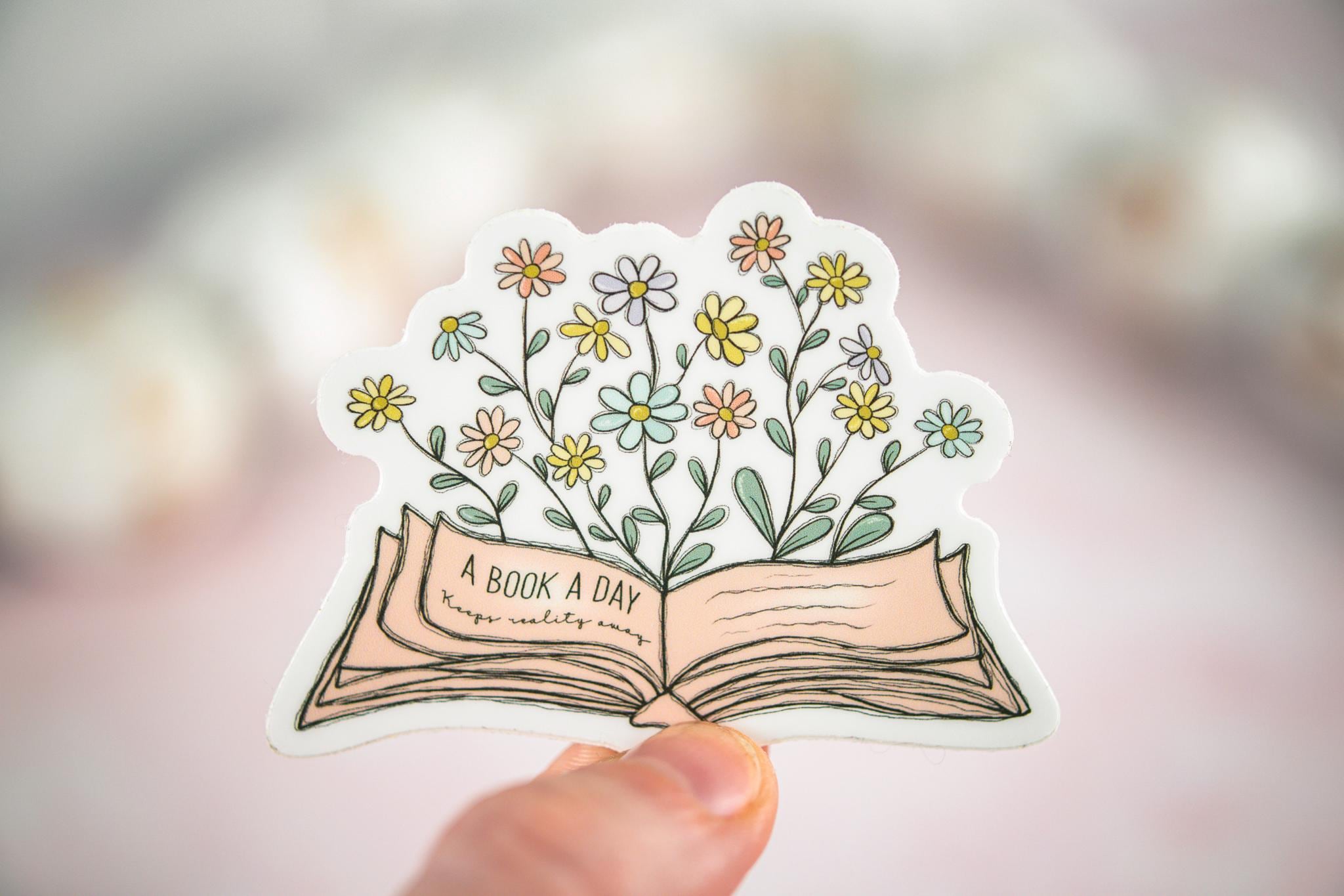 The "A Book A Day Keeps Reality Away" sticker is printed on beautiful, vibrant colors on vinyl sticker paper. This sticker is perfect for water-bottles, laptops, tablets, tumblers, journals and not