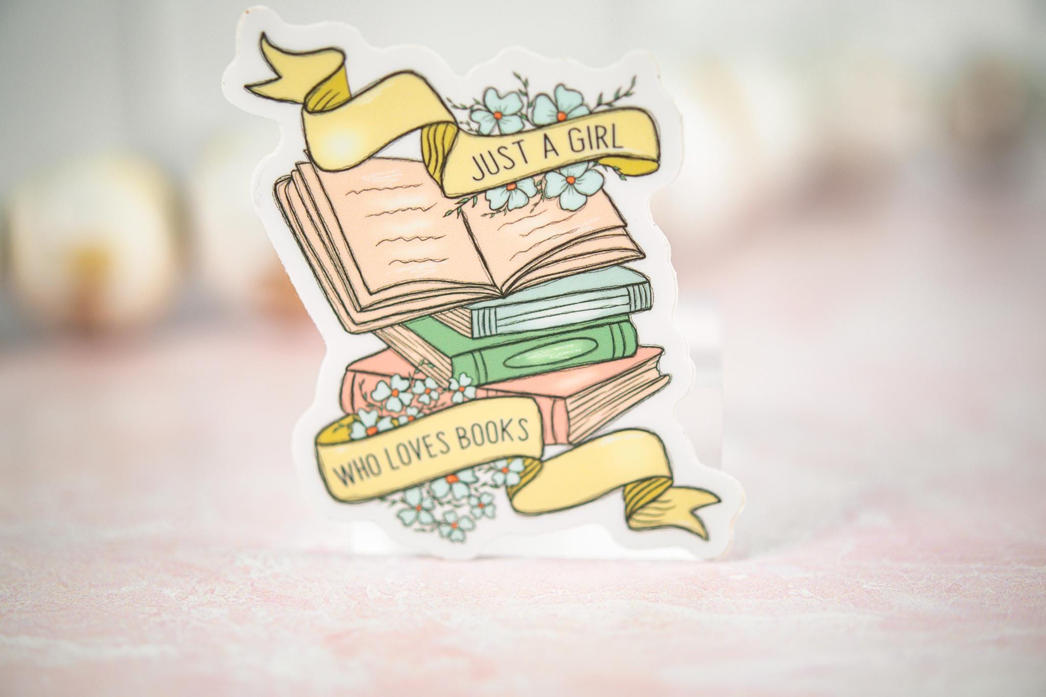 The "Just A Girl Who Loves Books" sticker is printed on beautiful, vibrant colors on vinyl sticker paper. This sticker is perfect for water-bottles, laptops, tablets, tumblers, journals and not