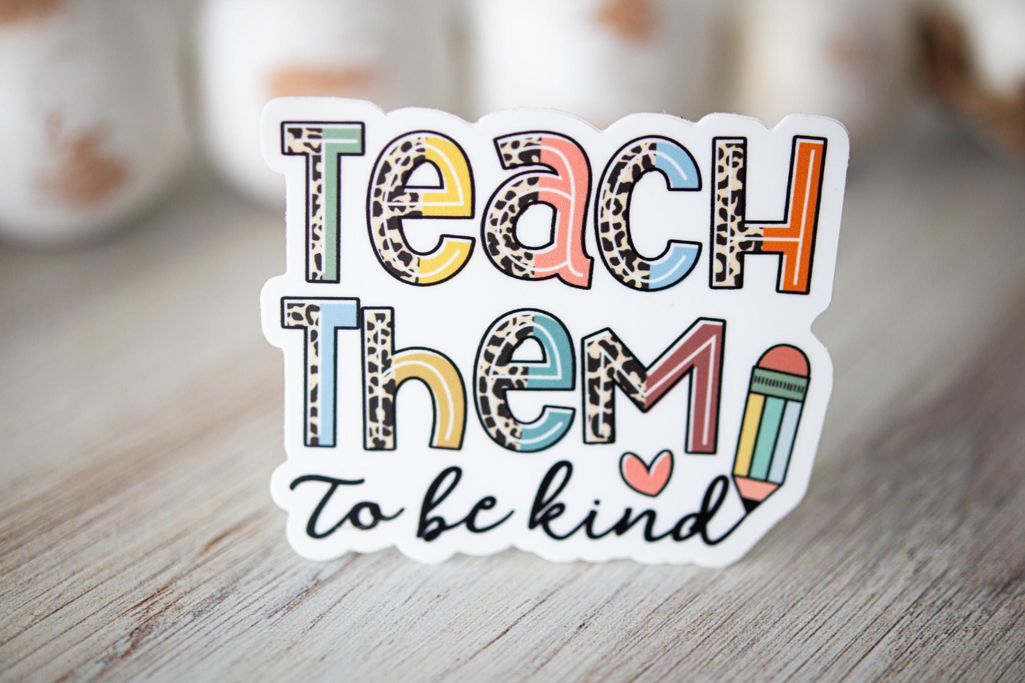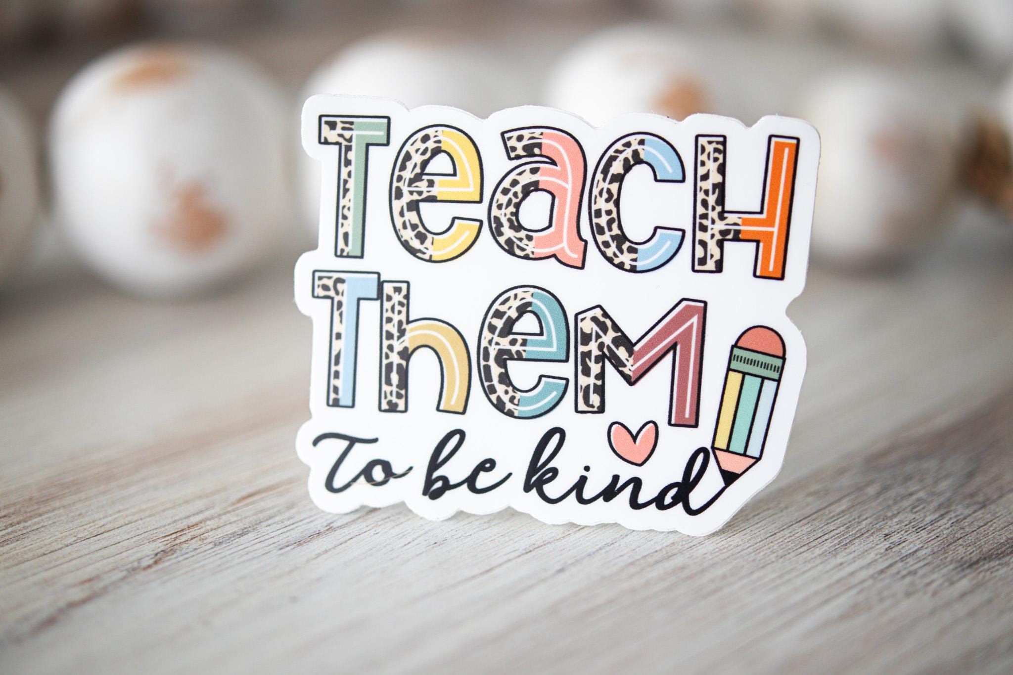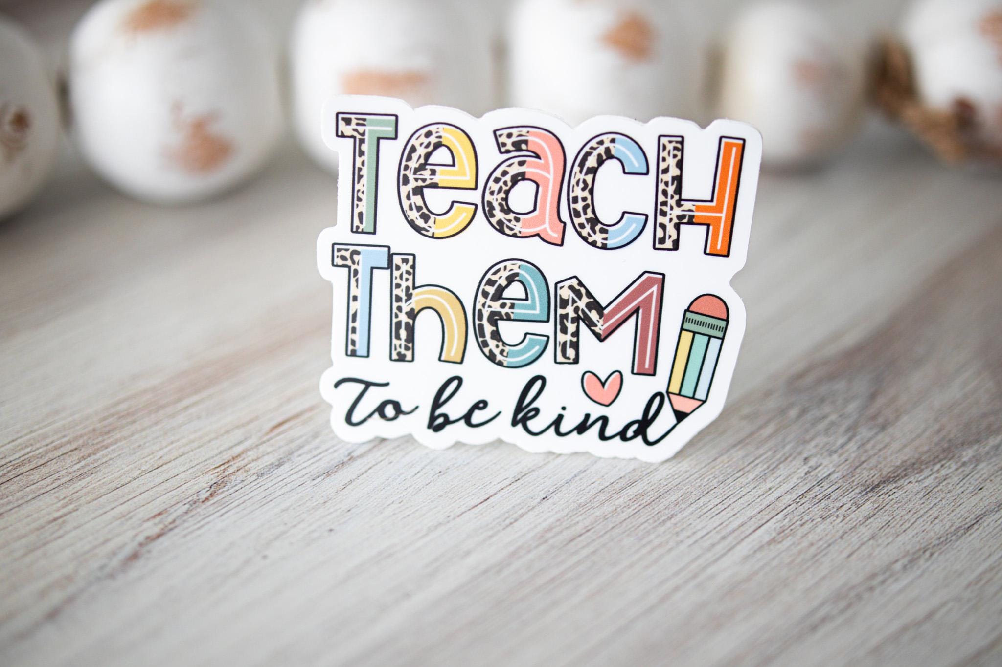 Teach Them To Be Kind Vinyl Sticker, Teacher Decal, School Floral Sticker, Flowers Decal, Laptop Sticker, Notebook Label, Education Sticker