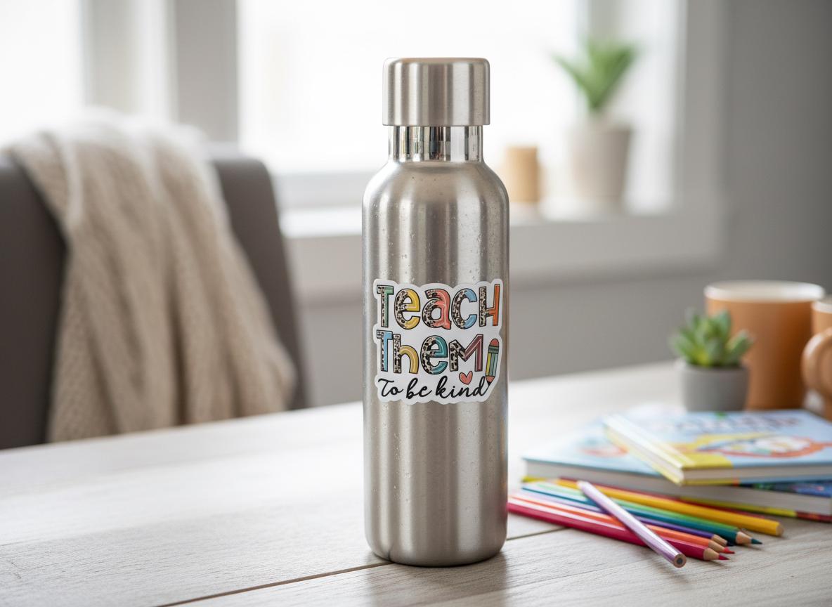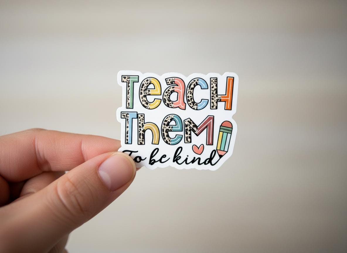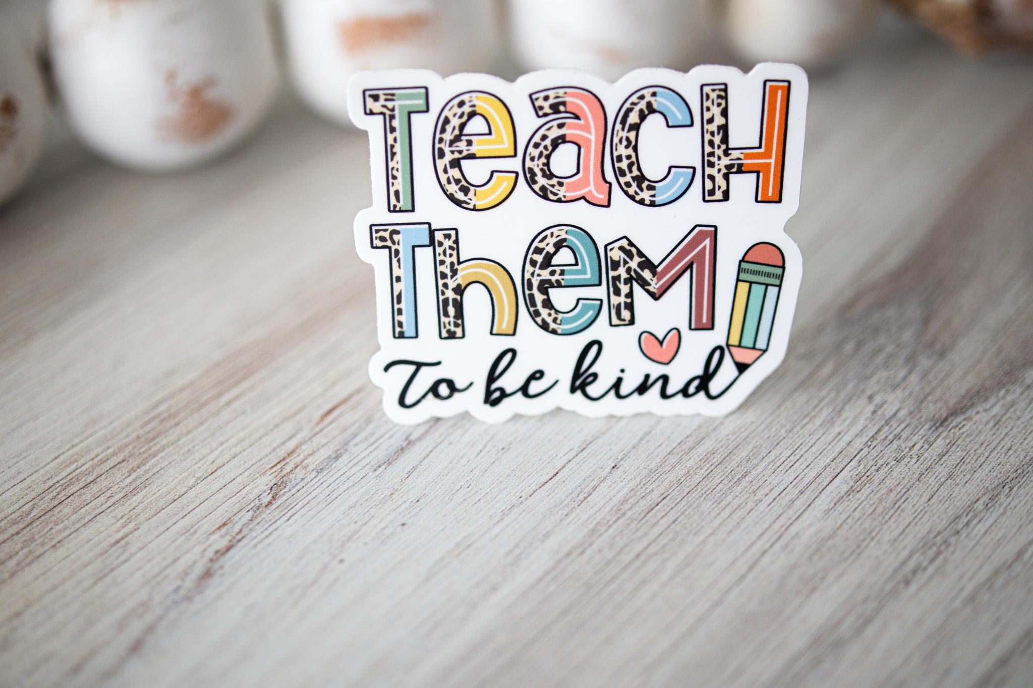Teach Them To Be Kind Vinyl Sticker, Teacher Decal, School Floral Sticker, Flowers Decal, Laptop Sticker, Notebook Label, Education Sticker