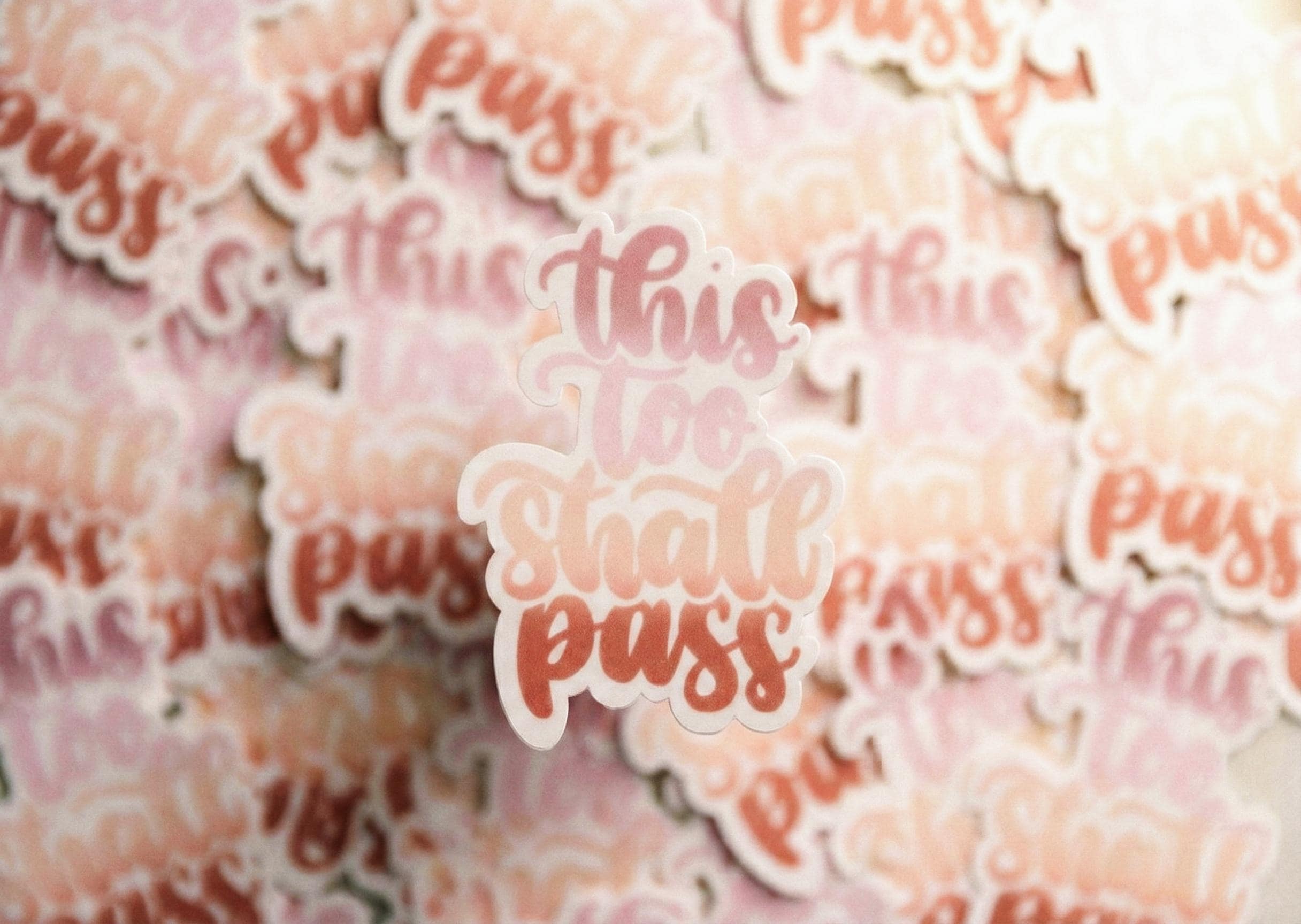 This "This Too Shall Pass - Pink" sticker is printed in beautiful, vibrant colors on vibrant vinyl sticker paper. This sticker is perfect for waterbottles, computers, tablets, iPads, laptops, tumblers, journals and notebooks.