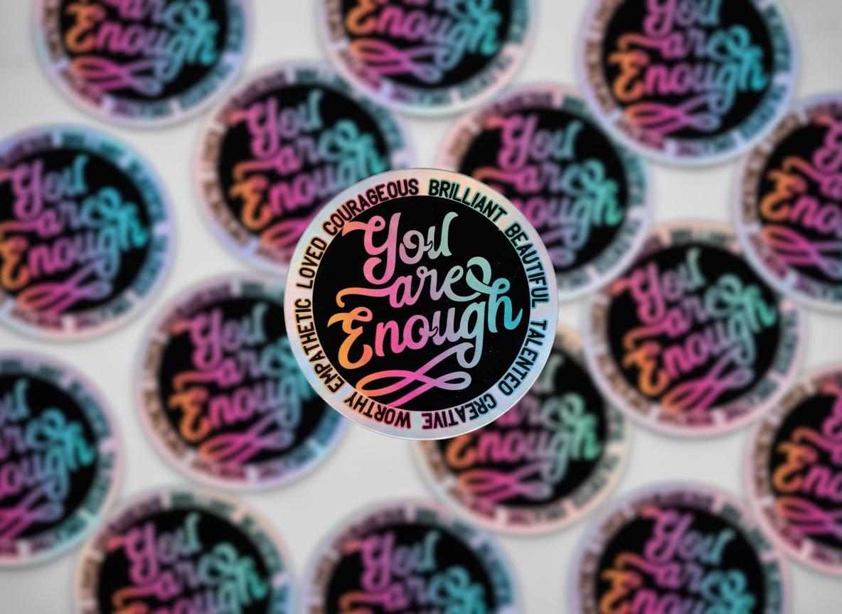 This “You Are Enough” is printed in beautiful, vibrant colors on vinyl sticker paper. These stickers are perfect for water-bottles, laptops, tablets, tumblers, journals and notebooks.