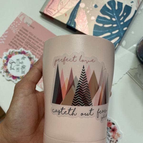 Perfect Love Casts Out Fear Label, Die Cut Decal, Christian Sticker